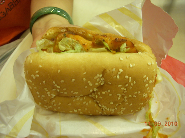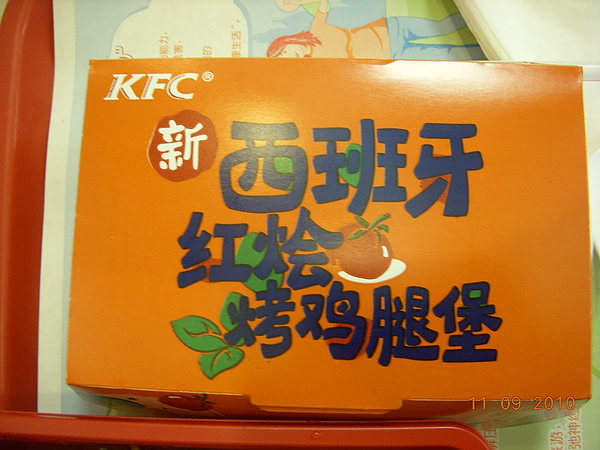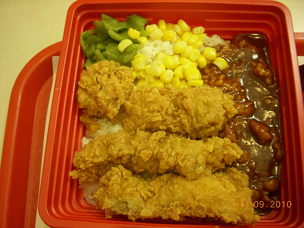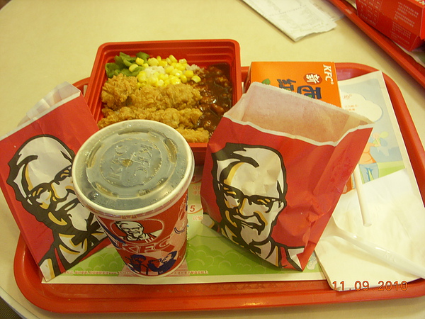 好不容易在客滿的肯德基找到一個位,買了漢堡跟麻婆豆腐套餐。