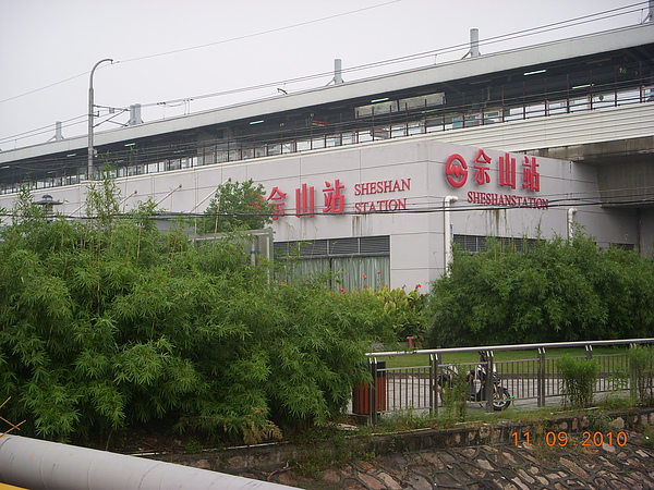 搭地鐵搭到「佘山」站,地鐵出口處轉搭公交車「嘉松線」,
