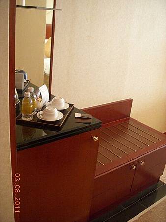 放行李的地方,然後每天都會提供兩小瓶的水,