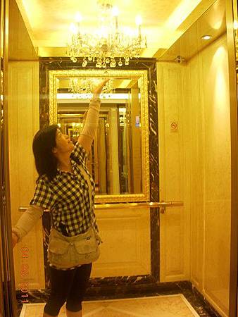 電梯裡面居然有水晶吊燈 ?????? 真的是奢華........