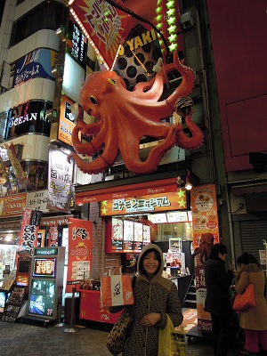 接下來第三家章魚燒,還是在道頓堀,店門口上面有一隻大大的章魚,
