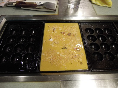一份章魚燒 12 顆,最右邊的平板是給大板燒加熱用的。