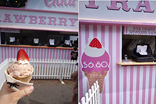 看到這個攤位才想到:來 ekka 幾乎人手一支草莓聖代,